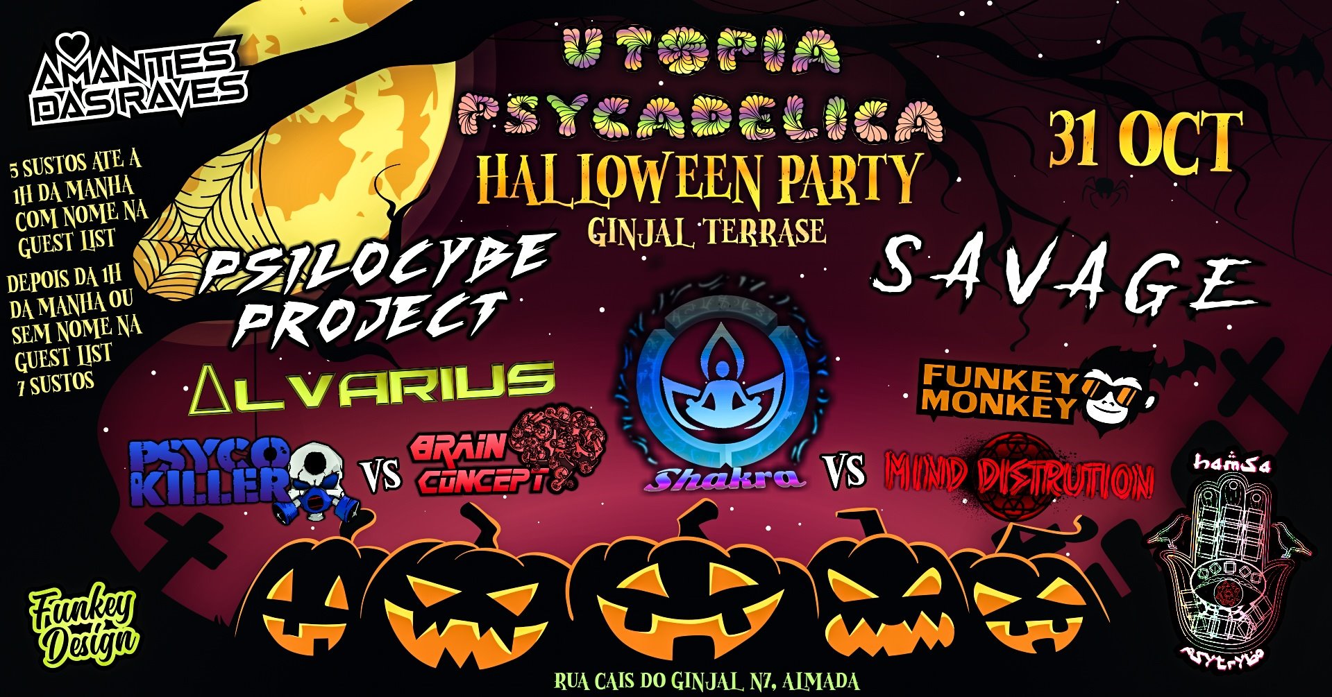 A Hamsá PsyTrybo E A Utopia Psycadelica JUNTAM SE NESTA NOITE MISTICA PARA TRAZER UM MEGA LINE UP AO Ginjal terrasse !! SURPRESAS PARA QUEM VIER MASCARADO